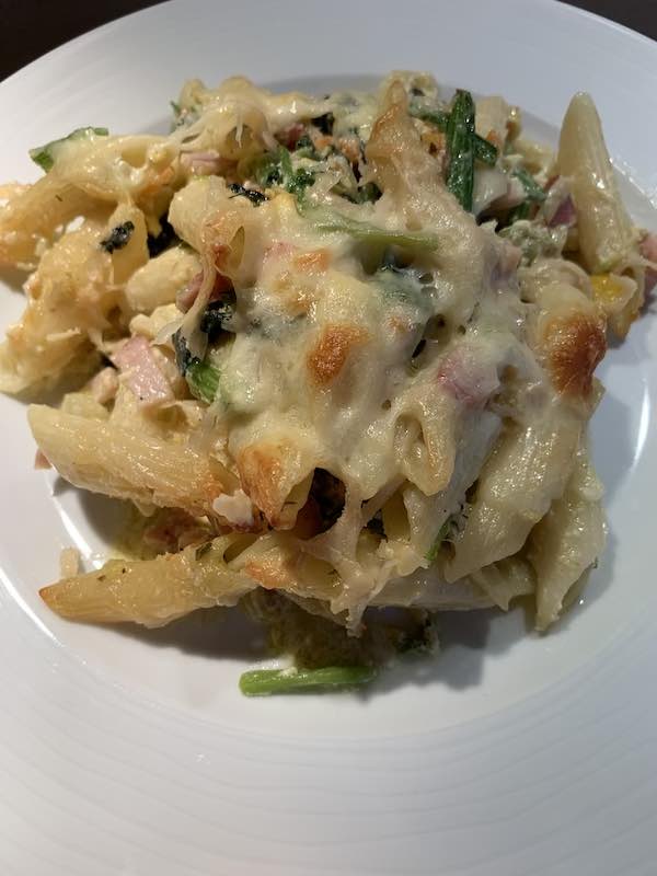 Σε περίπτωση που θέλουμε μπορούμε να βάλουμε και ψιλοκομμένο μπείκον και λούντζα - μπορούμε όμως να κάνουμε τη συνταγή με μόνο λαχανικά.